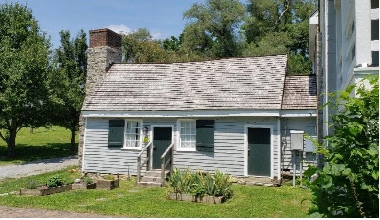 Clermont kitchen, built by Edward Snickers in 1777, 65 feet west of the 1755 house. This kitchen served the owners from 1777 to 1971. Additions to the west of the 1755 house eventually reached this kitchen, allowing an internal connection.