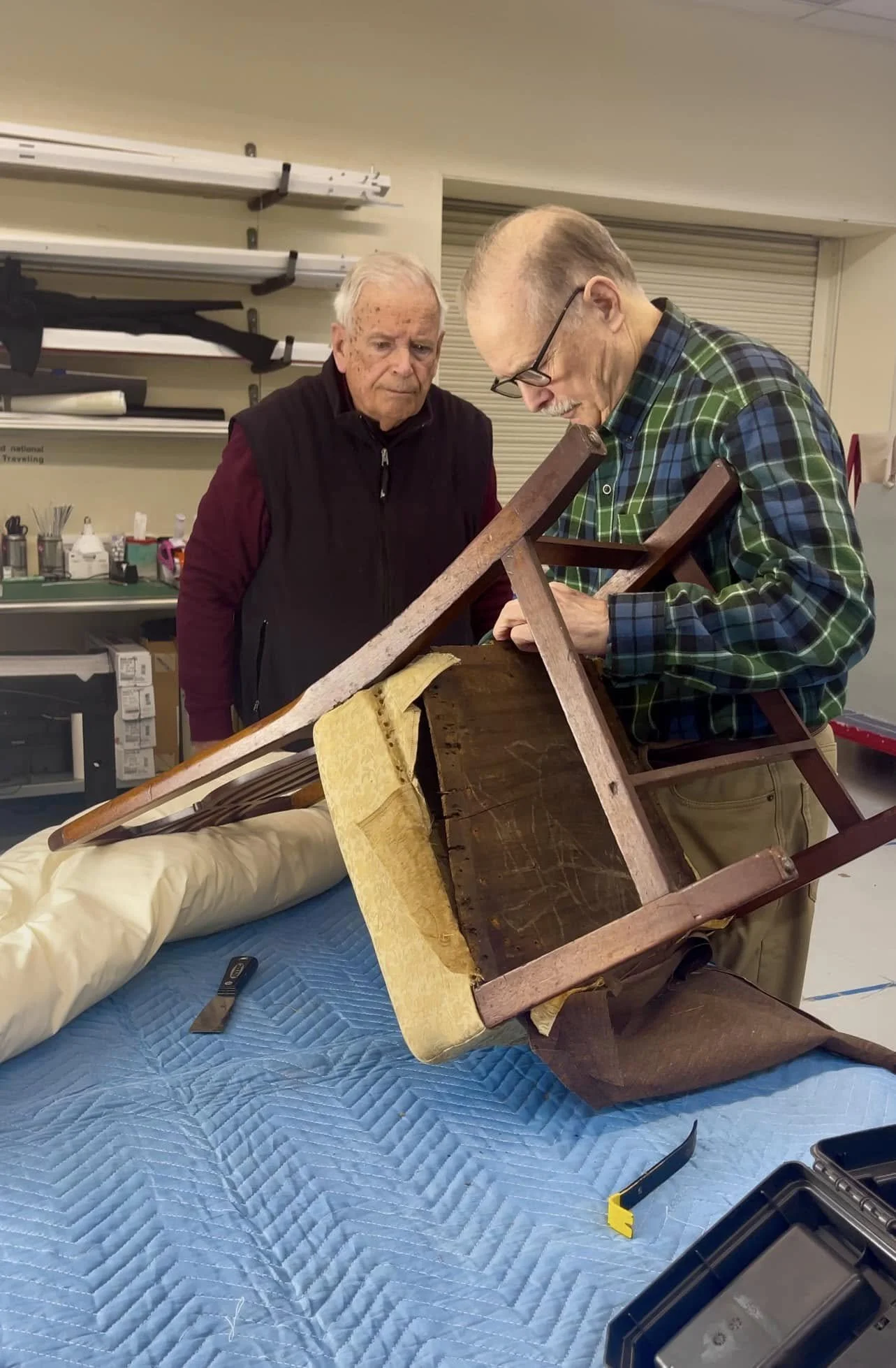In reviewing furniture used at Clermont by Elizabeth Williams and her parents, Edward and Caroline Williams, and inherited by the Foundation in 2004, Nick Powers, Curator of Collections at the Museum of the Shenandoah Valley, has pointed out three items with special interest. While the Owner House is not furnished as a house museum (although some furniture is currently stored there), family furnishings from various periods are used to illustrate social and technological developments across its history.