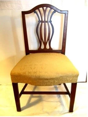 These three Neo-Classical chairs were part of a set of 8 or 12, made for Nathaniel Burwell at Carter Hall, ca 1795, possibly by a cabinetmaker in Winchester, and upholstered by another who advertised from Berryville. Until recently, only two exemplars were known, the one at the center at MESDA, and the one on the right at the Virginia Historical Society. The one on the left was discovered at Clermont.